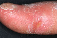 Изменение сосудов кистей рук приводит к развитию синдрома Рейно — резкого сосудистого спазма с похолоданием и болью в пальцах. Еще одним специфическим поражением является суставные изменения при склеродермии. Проявляются они воспалением с довольно быстрым нарушением подвижности суставов и формированием, так называемы, контрактур, то есть необратимой тугоподвижности из-за разрастания фиброзной ткани в суставе и потери эластичности ее капсулы.